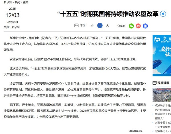 協(xié)助組織全國農(nóng)墾改革發(fā)展工作會議,部署“十五五”時期重點任務,新華社報道。