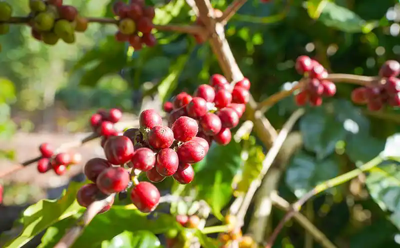 紅彤彤的咖啡鮮果掛滿枝頭。吳元皓攝