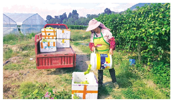 村民正在把采摘下來的百香果裝車。 張乾孝 攝