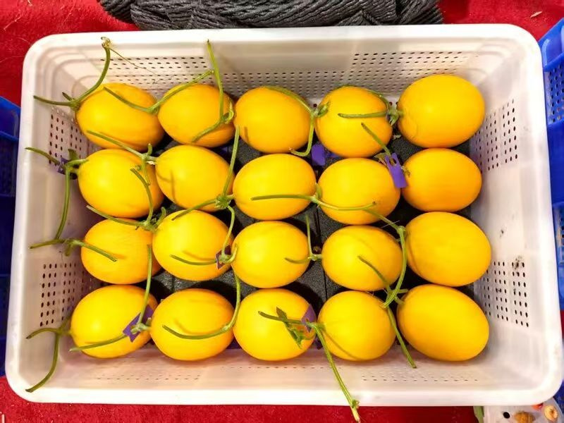海南果鮮生農業(yè)開發(fā)有限公司自主培育的“金蛋蛋”蜜瓜。