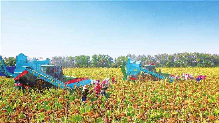 甘肅農(nóng)墾飲馬農(nóng)場向日葵豐收。完代可