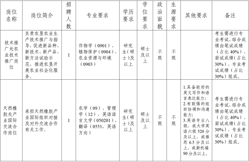 根據(jù)農(nóng)業(yè)農(nóng)村部在京事業(yè)單位2026年度公開招聘高校畢業(yè)生工作的統(tǒng)一安排,現(xiàn)就中國農(nóng)墾經(jīng)濟發(fā)展中心(農(nóng)業(yè)農(nóng)村部南亞熱帶作物中心)2026年度公開招聘高校畢業(yè)生有關(guān)事項補充公告如下: