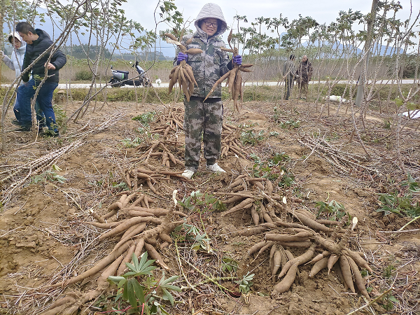模式創(chuàng)新,凝聚發(fā)展之力。兩江鎮(zhèn)采用“專家+農(nóng)戶”合作模式,引進國家木薯產(chǎn)業(yè)體系專家與農(nóng)戶緊密合作,農(nóng)戶提供土地,專家不定期到場提供技術(shù)支持,共同試驗種植高產(chǎn)新品種。今年,漢安村合作片區(qū)合作模式下的木薯種植基地面積達到了500畝,帶動周邊超100戶農(nóng)戶參與,預計2025年種植面積將達3000畝以上。合作模式不僅突破了農(nóng)戶種植技術(shù)的難關(guān),也搭建起銷售的橋梁。新模式下,用新品種、新技術(shù)種植的木薯一上市便被搶購一空,收購價格比傳統(tǒng)種植模式下的木薯高出30%,帶動廣大農(nóng)戶增收致富。
