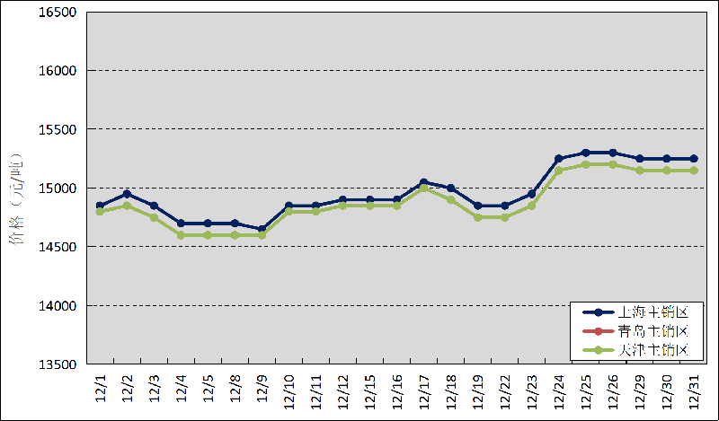 圖3  2025年12月國內(nèi)主銷區(qū)天然橡膠價(jià)格走勢
