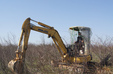 疫情期間桑海集團農業(yè)分場探索使用小型挖掘機為掌葉覆盆子除草