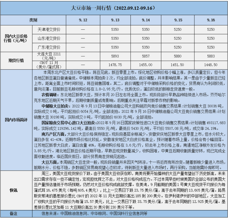 天然橡膠、大豆、玉米市場(chǎng)一周行情(2022.09.12-09.16)